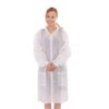Batas blancas con velcro y bolsas al frente Presentación: Caja con 50 Unidades.